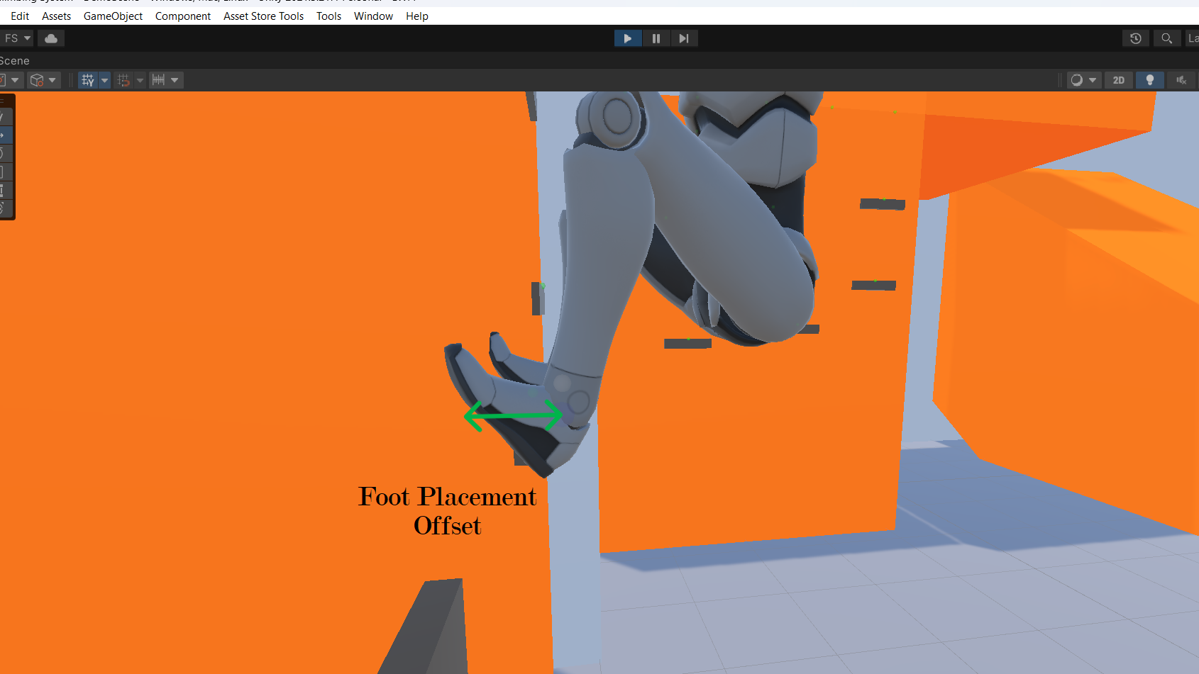 2) Foot Placement Offset - Offset between the foot bone and position on the wall where the foot is placed. Adjust this value and make sure that the foot is correctly placed on the wall